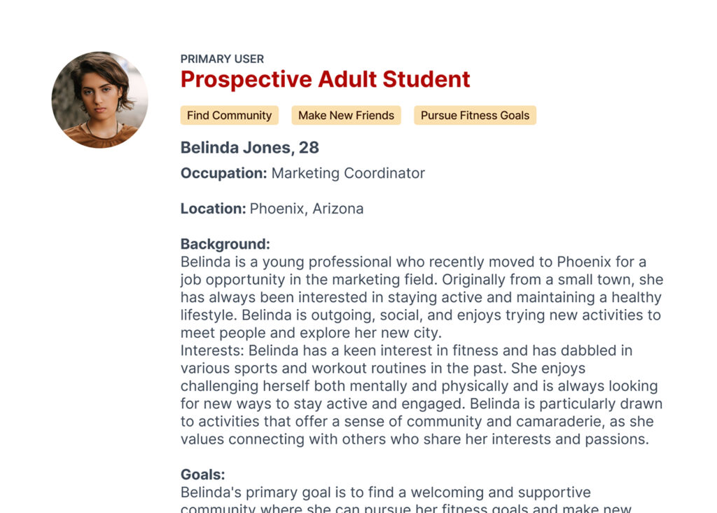 Created user personas for both prospective adult students and parents of prospective students